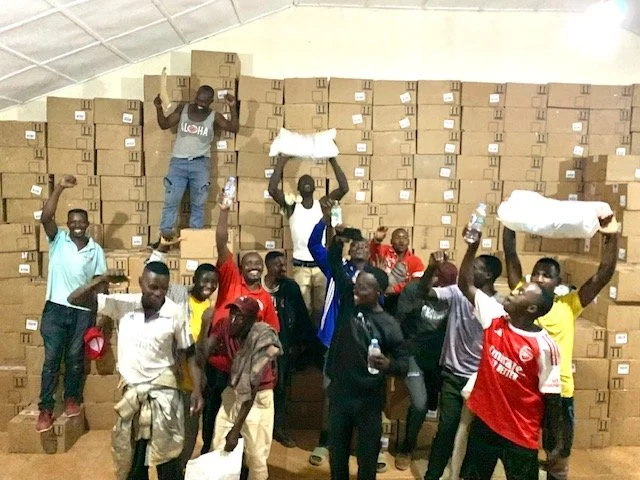 Five containers of books and materials spread across three trucks and two long nights. The first truck—carrying one container—arrived Saturday evening, and from 8:30 to 10:00 pm, a team of 15 volunteers jumped into action. And when we say “jumped,” we mean it. The team at ABC in Rwanda was running to their new library.